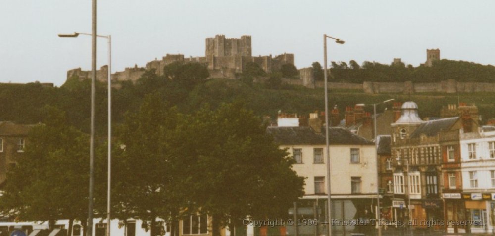 The fortifications in the background sit high up on one of the famous "white cliffs of Dover."