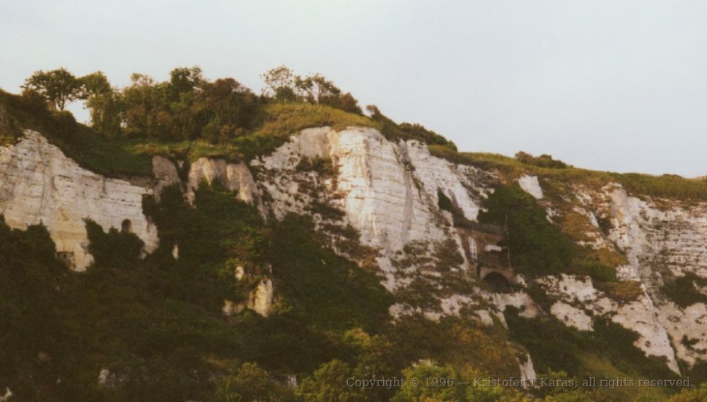 And here we have one of the famous "white cliffs" of Dover. The cliffs aren't terribly white; and they are littered with military bunkers and such. Perhaps if I had been able to walk farther away from the center of Dover, natural beauty might have been in greater abundance.