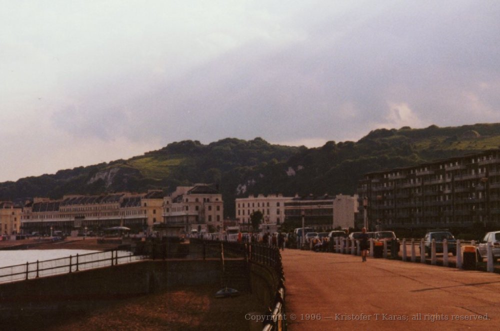 There is plenty of room on this pedestrian walkway to accommodate quite a crowd; but alas, few people seem to be around to take advantage. The ferry-port and cliffs are behind me in this photograph.