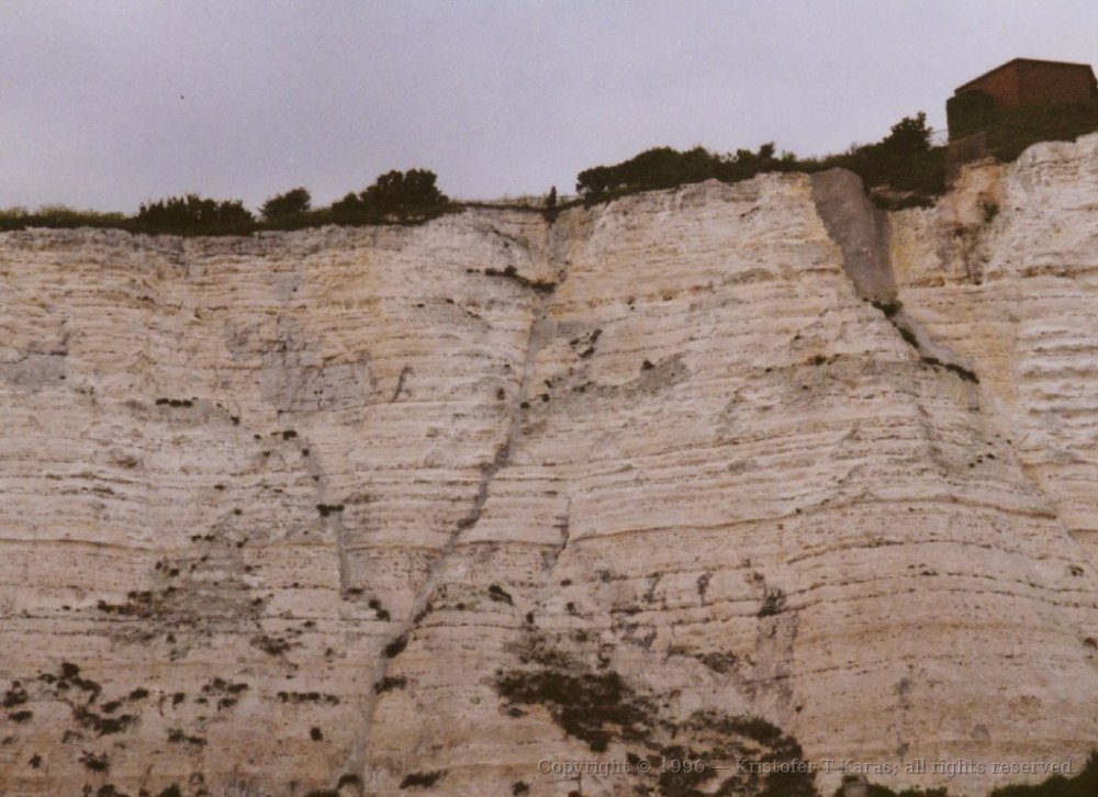 This photograph is good for showing the striation present in the sedimentary rock that makes up the white cliffs.