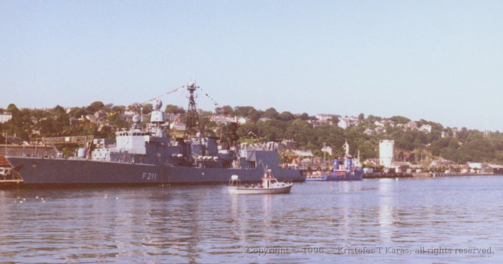 F211 sits berthed in the larger estuary here leading to Cork harbor.